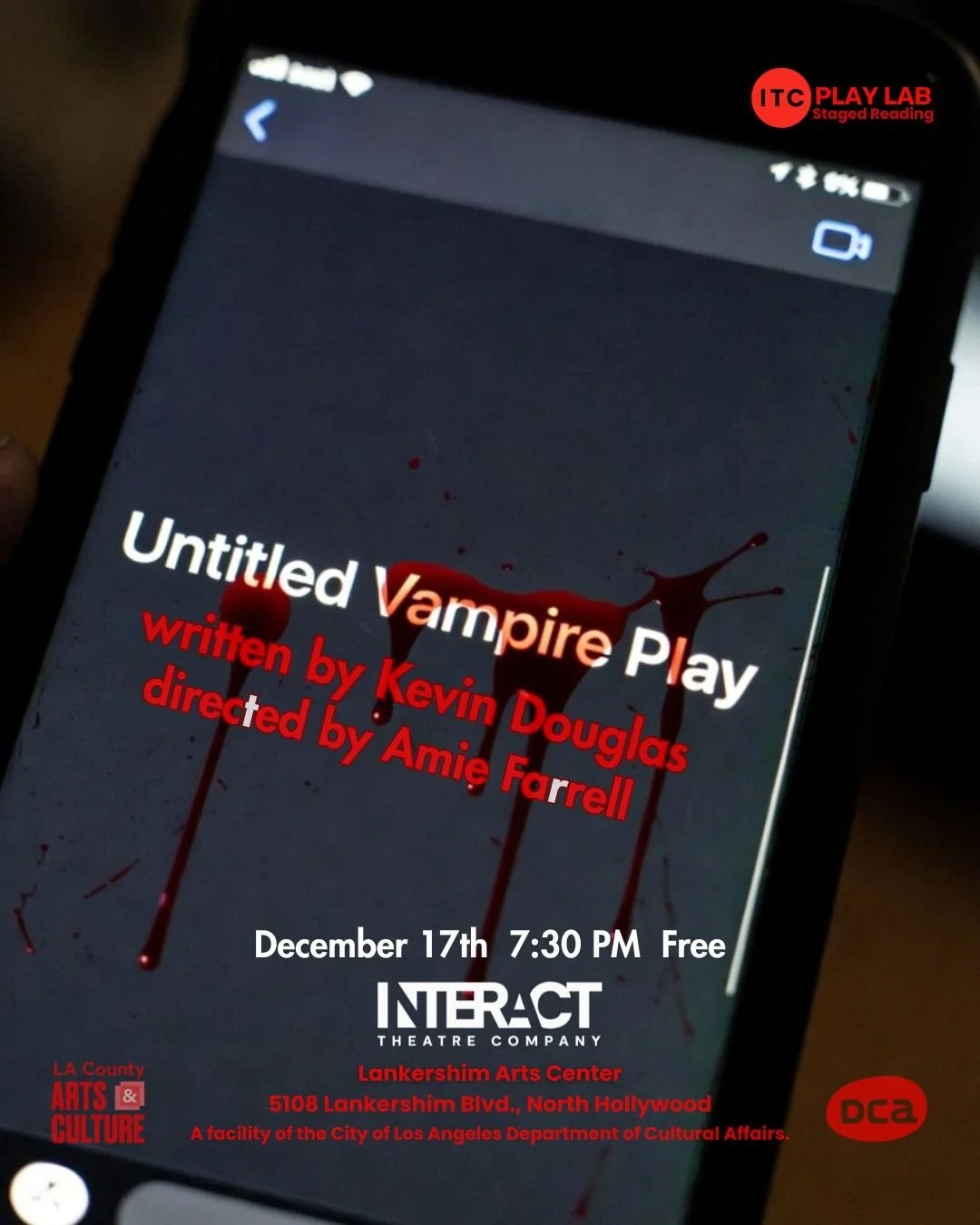 Interact brings top L.A. talent together at Lankershim Arts Center every other Wednesday night for the ITC Play Lab and rehearsed readings of great plays. IT’S ALL FREE & OPEN TO THE PUBLIC! Find out what’s next! Email us at info@interactla.org & just say “subscribe me.”