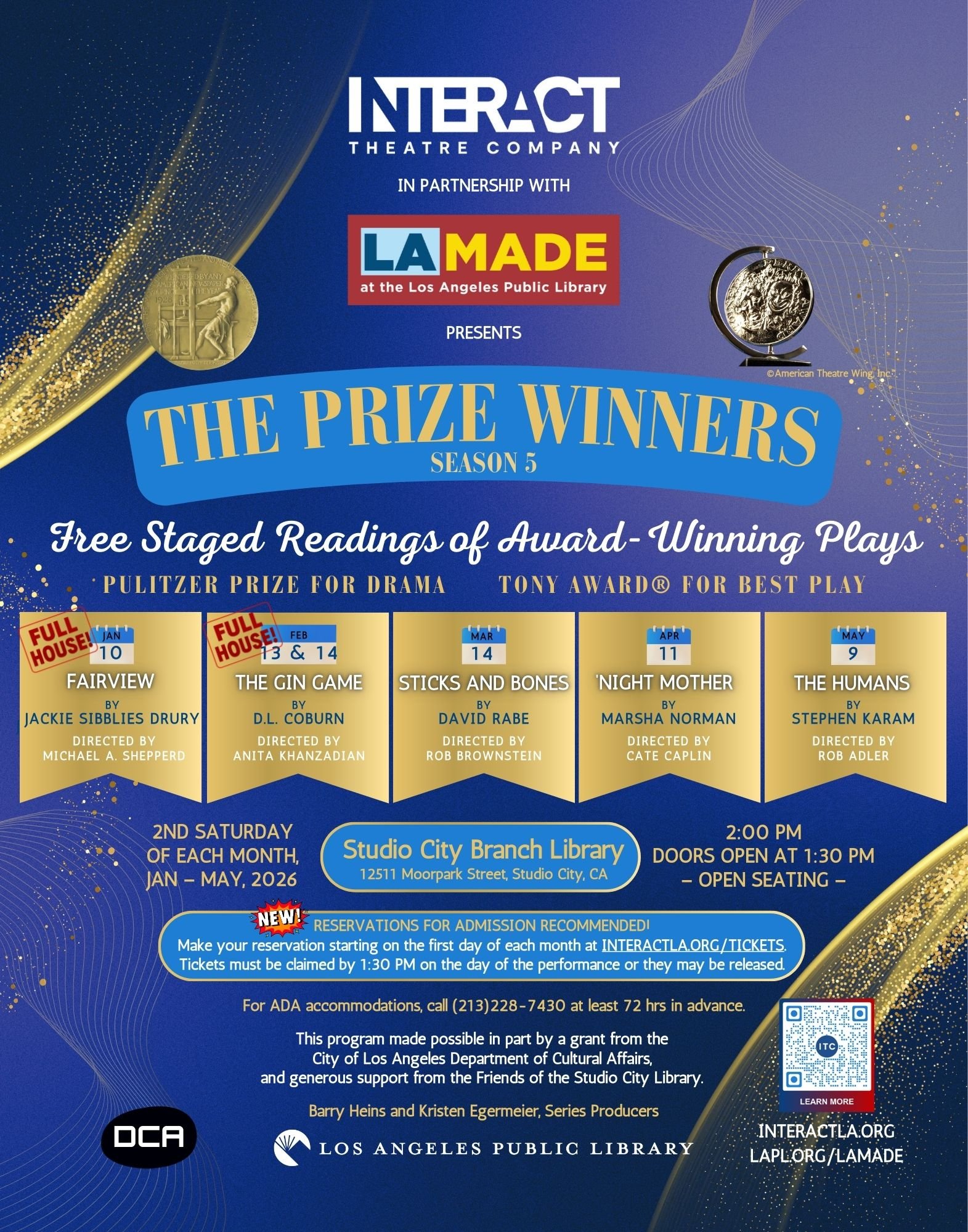Tickets for " 'Night Mother " will be available on April 1st at noon. Apr 11 'Night Mother Saturday, April 11, 2026 2:00 PM 4:00 PM Google Calendar ICS Tickets for ‘Night Mother will be available on April 1st at noon. View Event → Jan 10 FAIRVIEW Saturday, January 10, 2026 2:00 PM 5:00 PM Studio City Branch Library (map) Google Calendar ICS FAIRVIEW by Jackie Sibblies Drury, directed by Michael A. Shepperd. View Event →